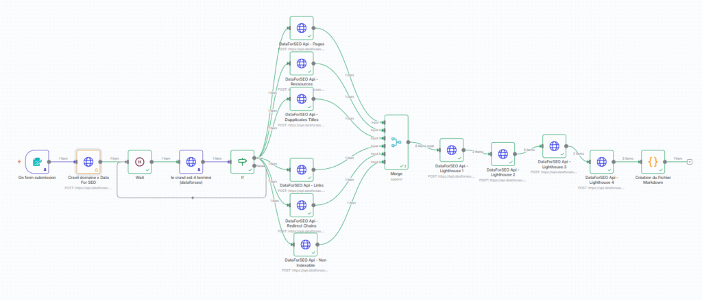 Once the crawl is finished, My workflow automates calls to several DataForSEO endpoints: