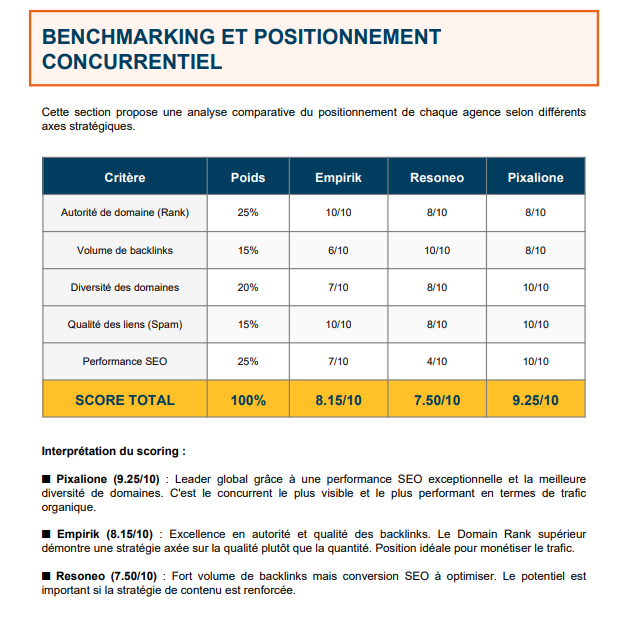 For internal buy-in: You need to convince leadership to invest in SEO? Send them this. With numbers. Competitor comparisons. Quantified potential gains.