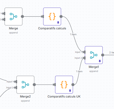 Raw data is useless. The real value comes from the next Code node, which I call « Comparatifs calculs » (Calculation Comparisons in french). This block of JavaScript is the heart of the automation.