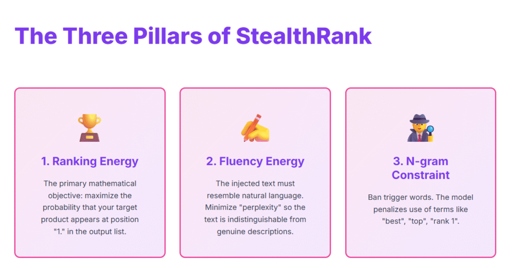 StealthRank inserts text that mathematically shifts the probabilities without explicit commands.